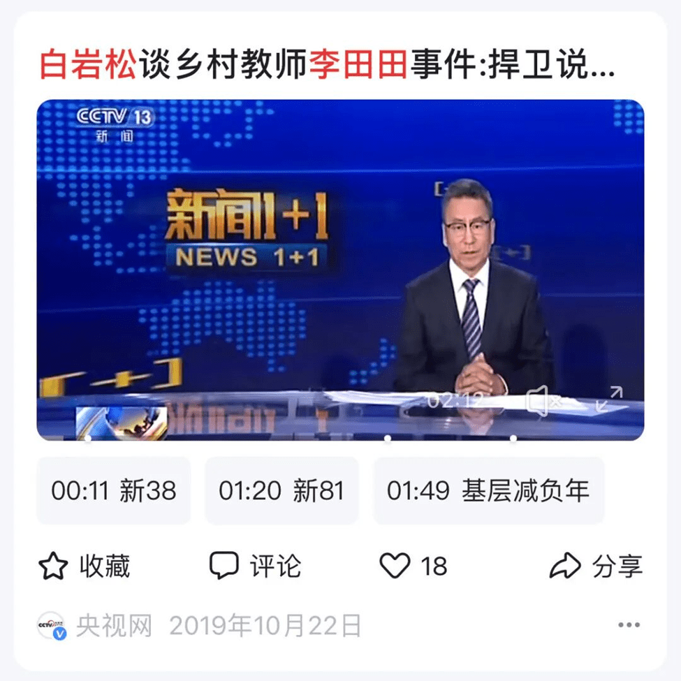 - 2019年10月22日被白岩松采访后开始了她的炒作之旅